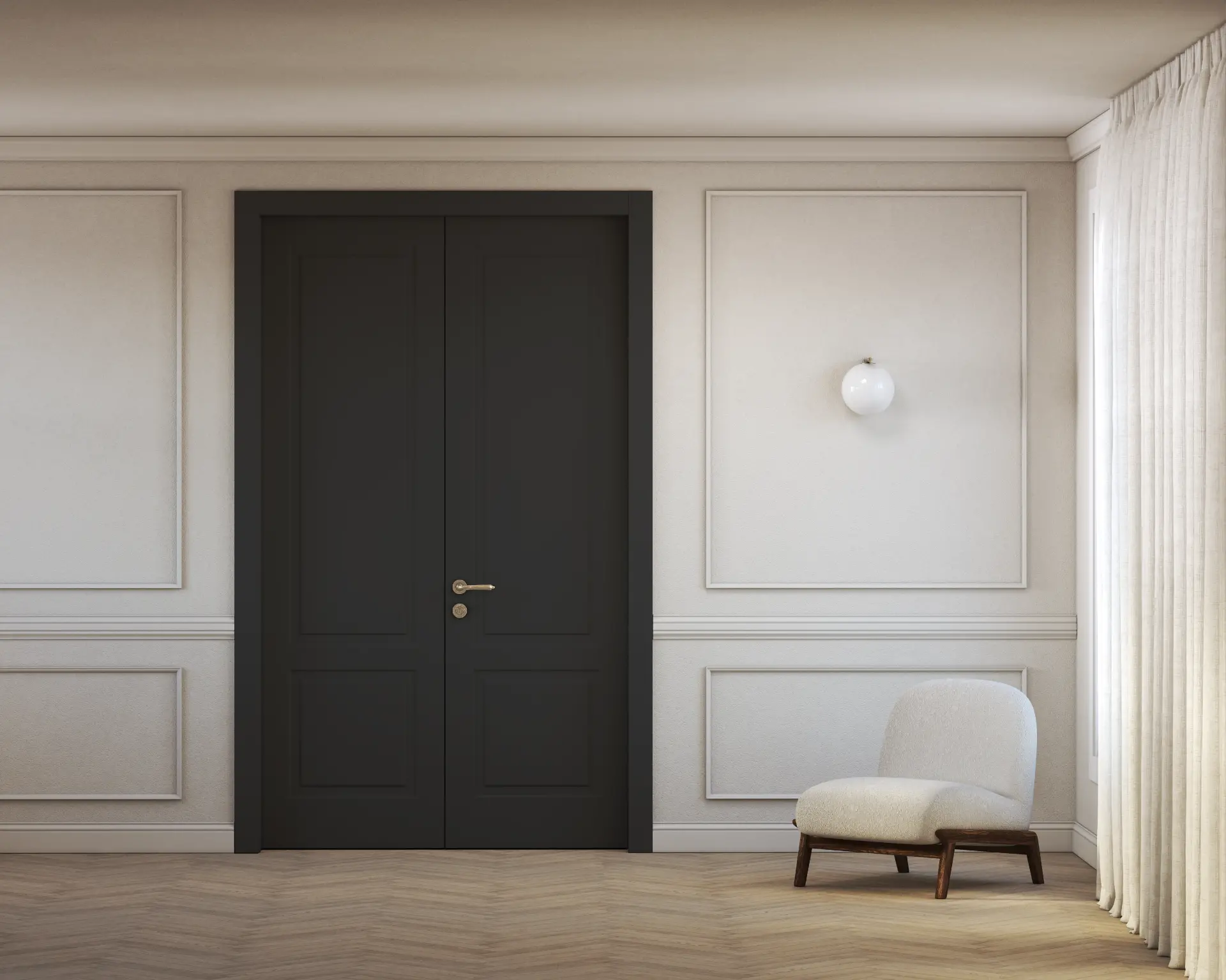 הדלת מיוצרת בגמר צבע בהתזה בגימור חלק ואחיד.