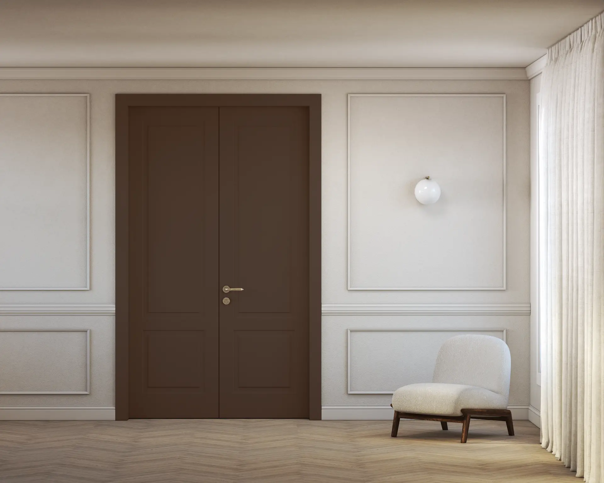דלת NO5 מסדרת RETRO מציגה עיצוב כפרי בעל שני פנלים.