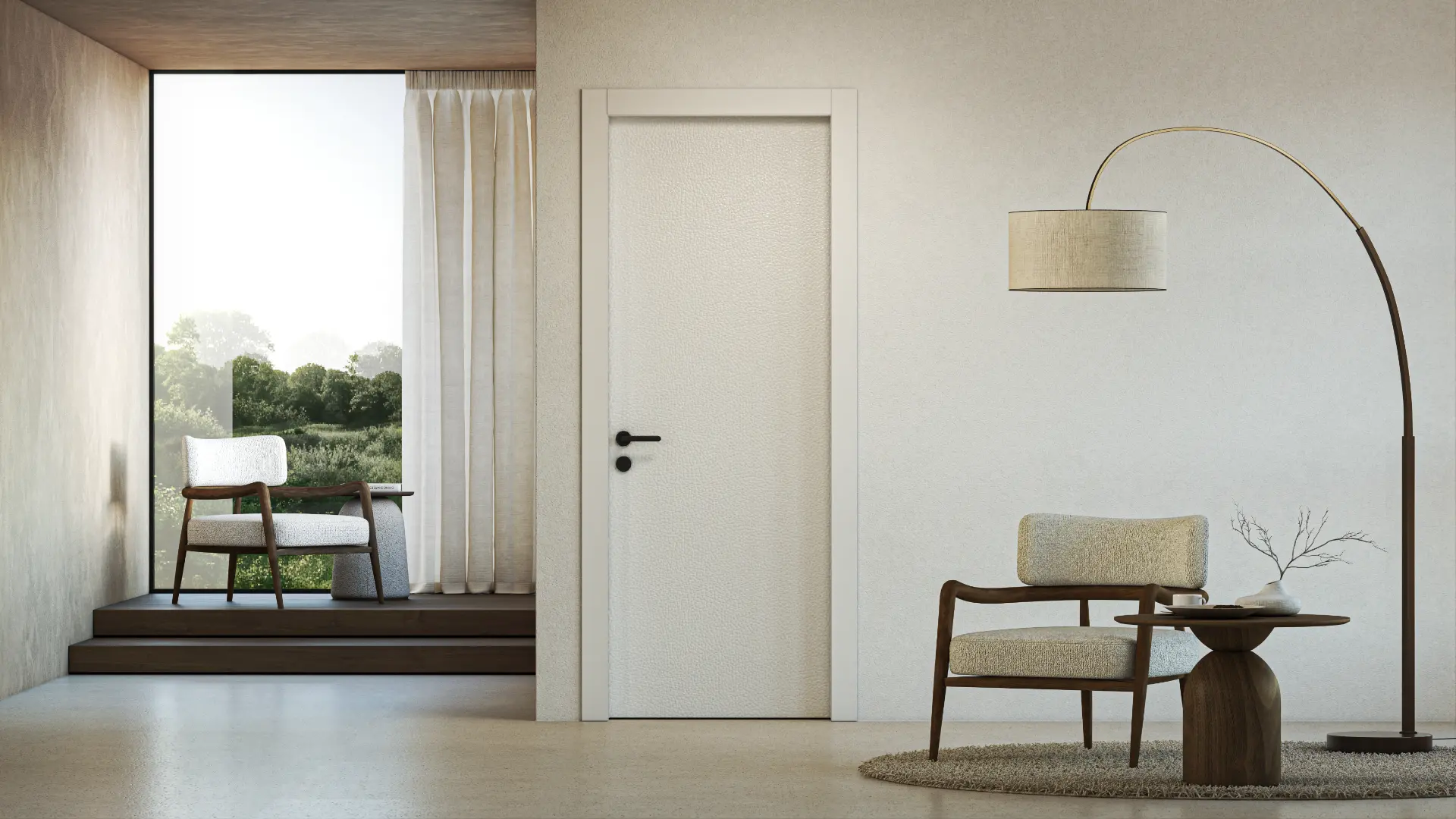דלת פנים דגם דמוי עור לבן מסדרת EDGE.
