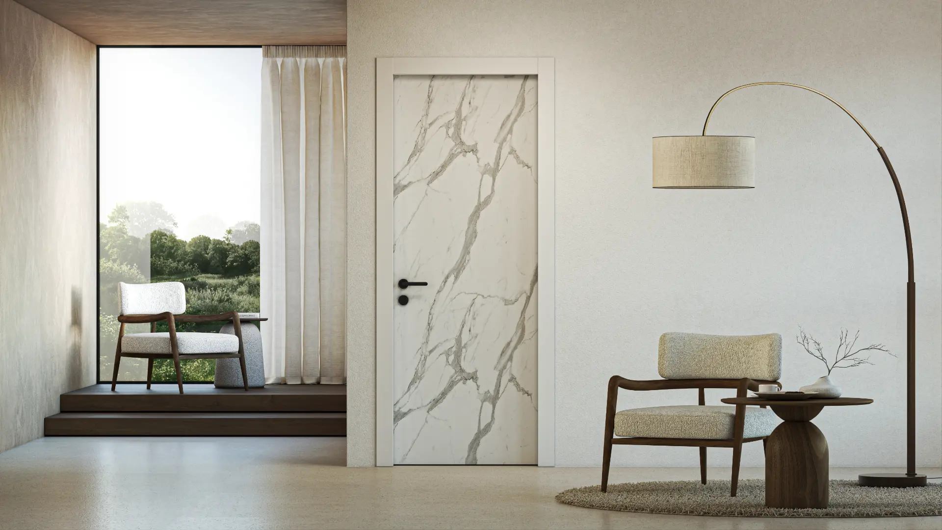 דלת פנים מדגם כלכתה מסדרת EDGE מציגה פרשנות מינימליסטית ועכשווית למראה היוקרתי של אבן השיש הטבעית.