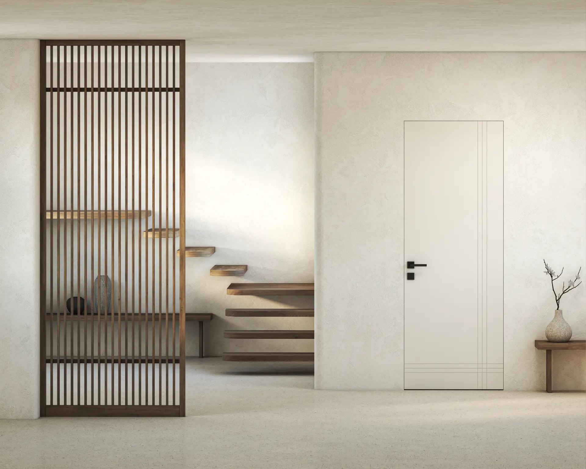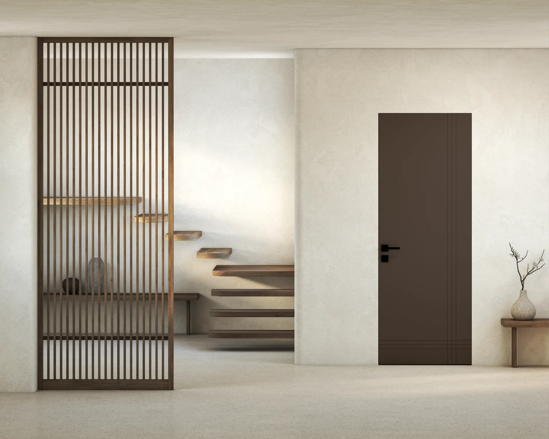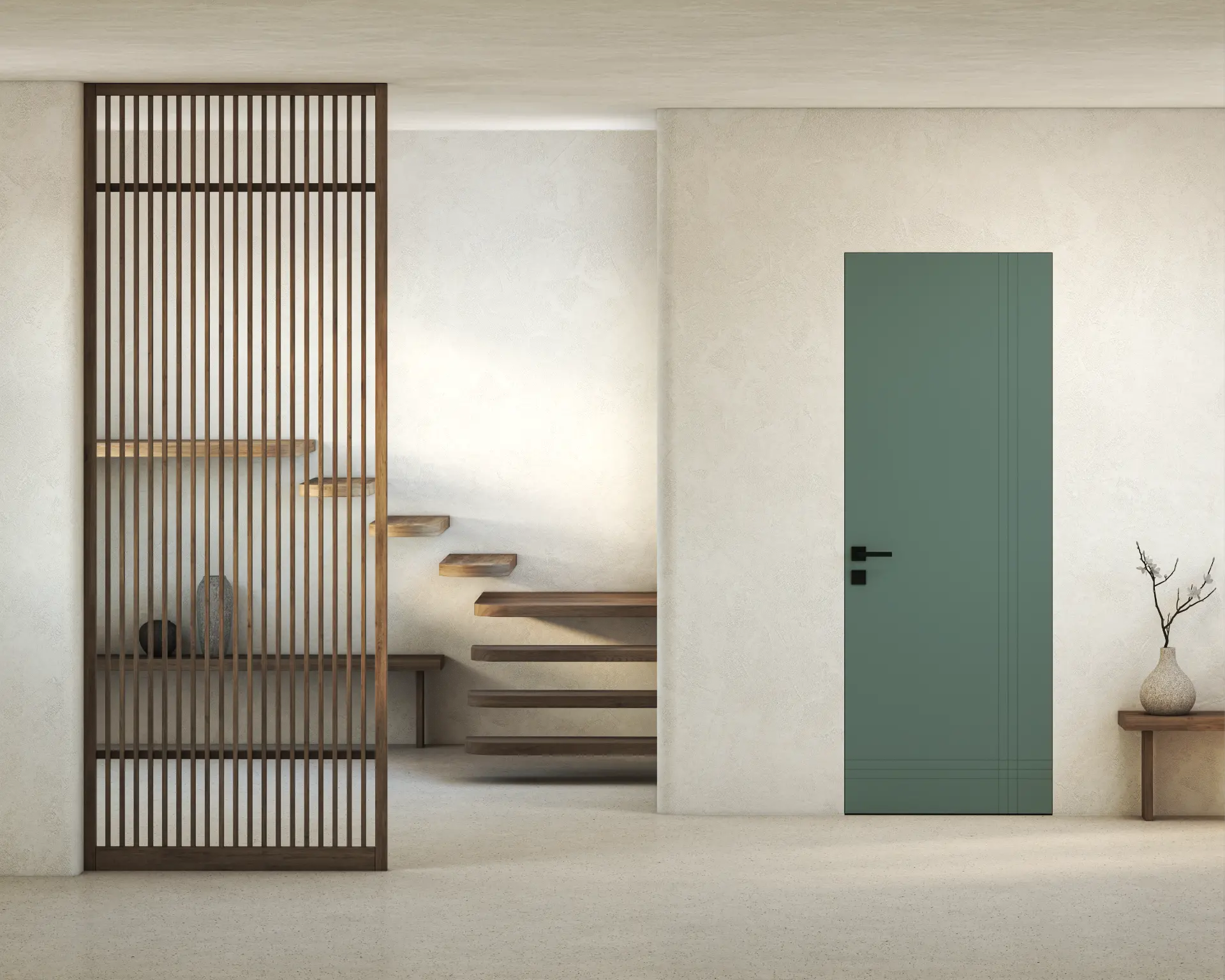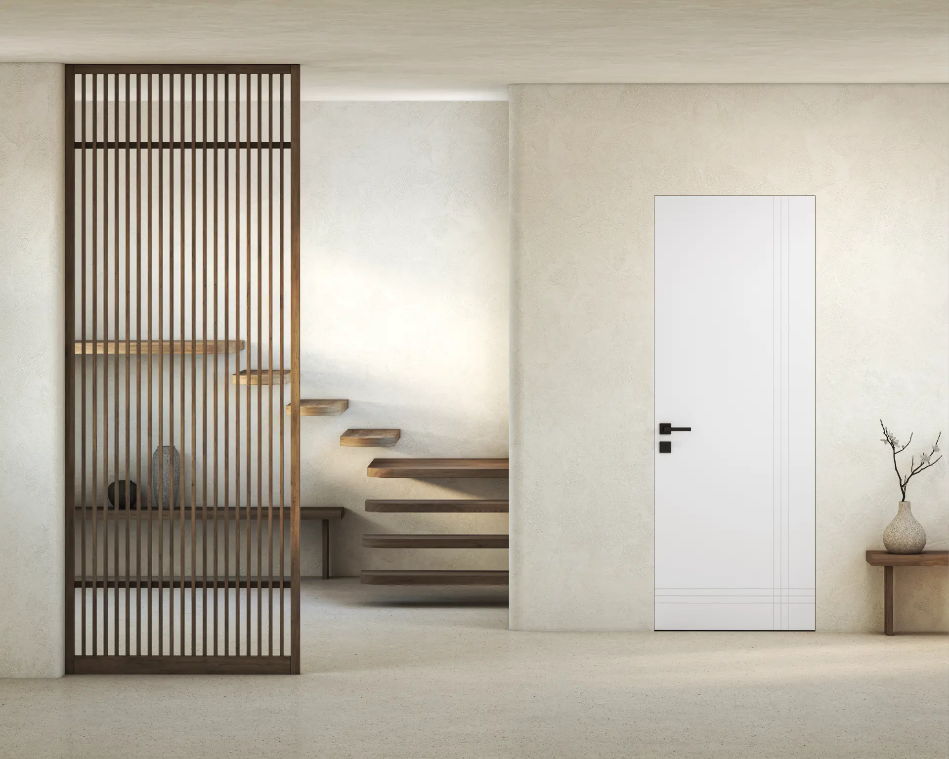 חיתוך גיאומטרי מודרני בקווים מדוייקים דלת מעוצבת עם חירוצים כפולים אנכיים ואופקיים היוצרים נקודת חיבור ייחודית בתחתית הדלת. הקווים המדויקים מעניקים תחושת סדר ואיזון עם מראה גרפי חזק ומודרני.