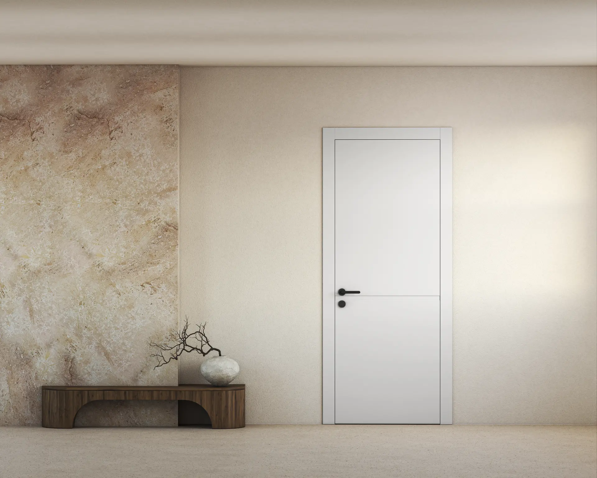 שקט צורני עם טוויסט גרפי. דלת עם חירוץ אופקי אחד שמצליח לשבור את המישור החלק ולהעניק עניין. הפתרון האידיאלי למי שמחפש דלת מינימליסטית עם תנועה עדינה.
