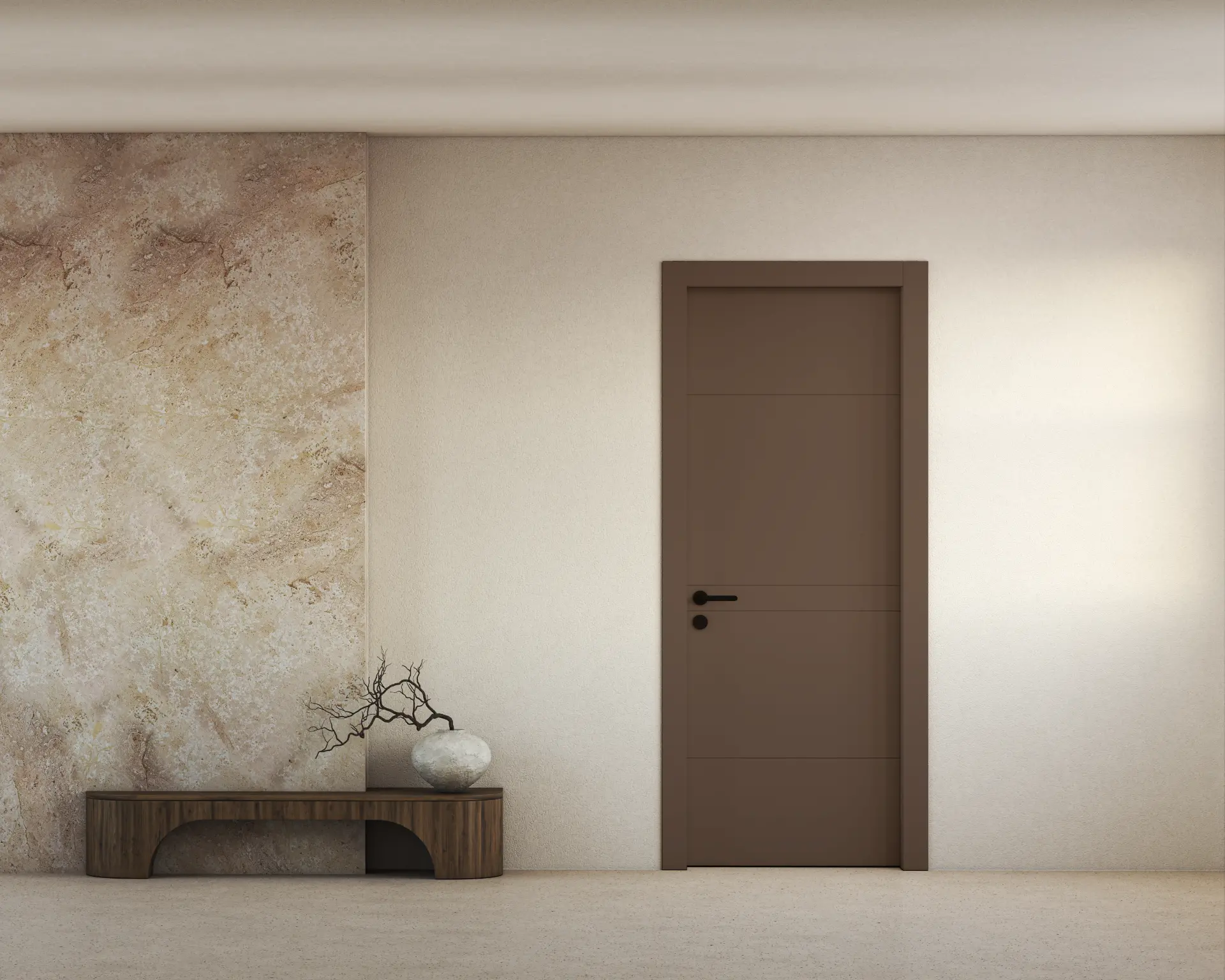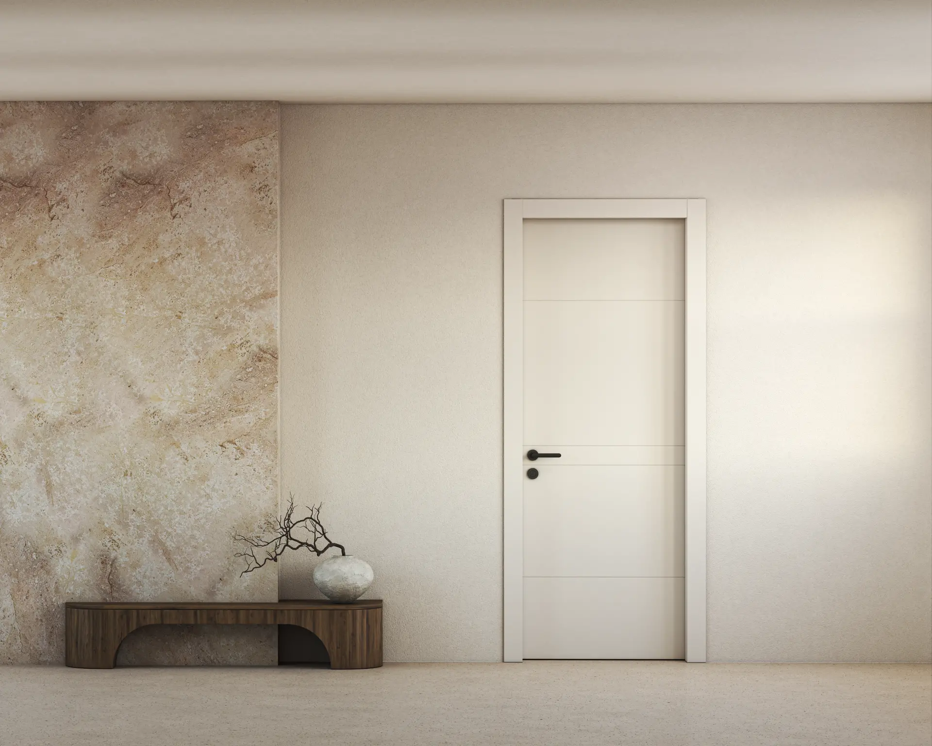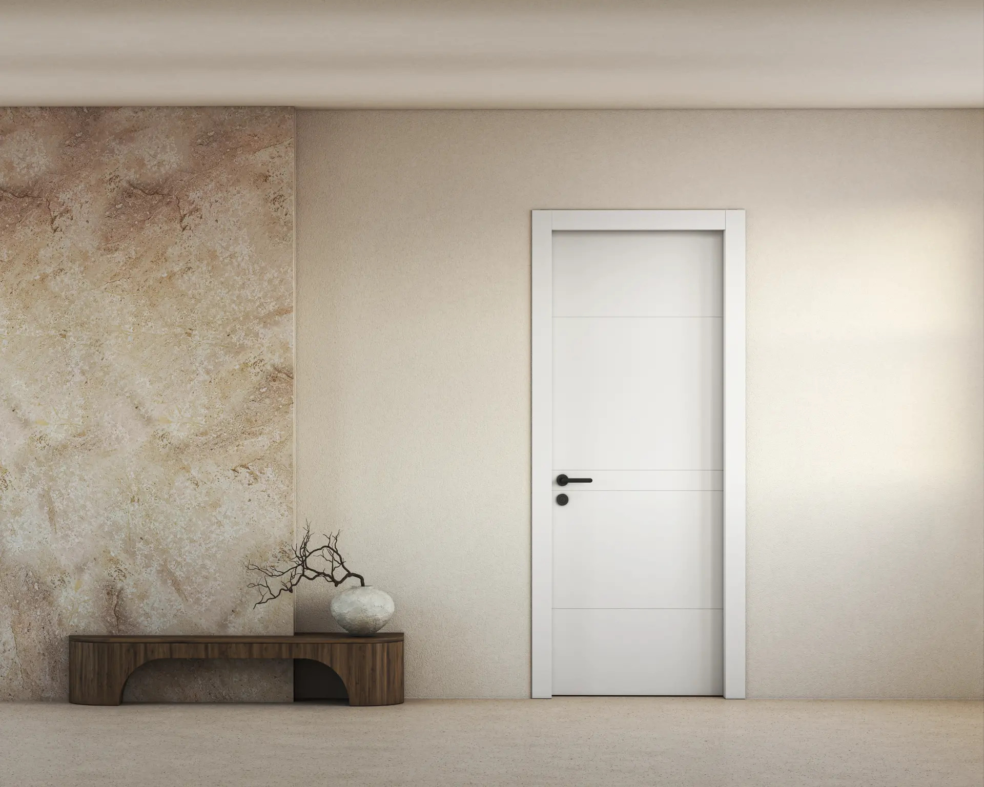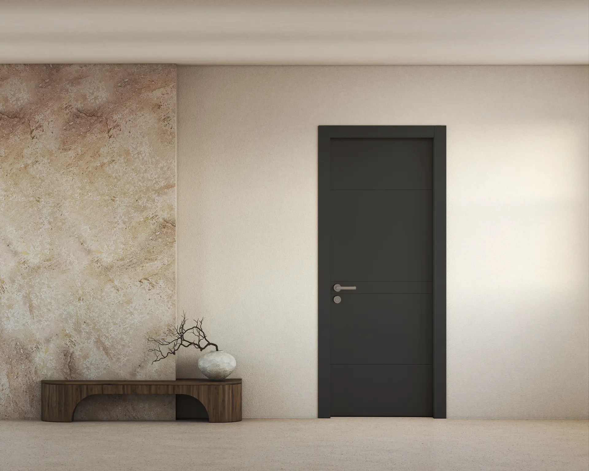 שלוש פעימות אופקיות של איזון מודרני דלת חלקה עם שלושה חירוצים אופקיים עדינים, שמייצרים קצב שקט ואסתטיקה מדוייקת.