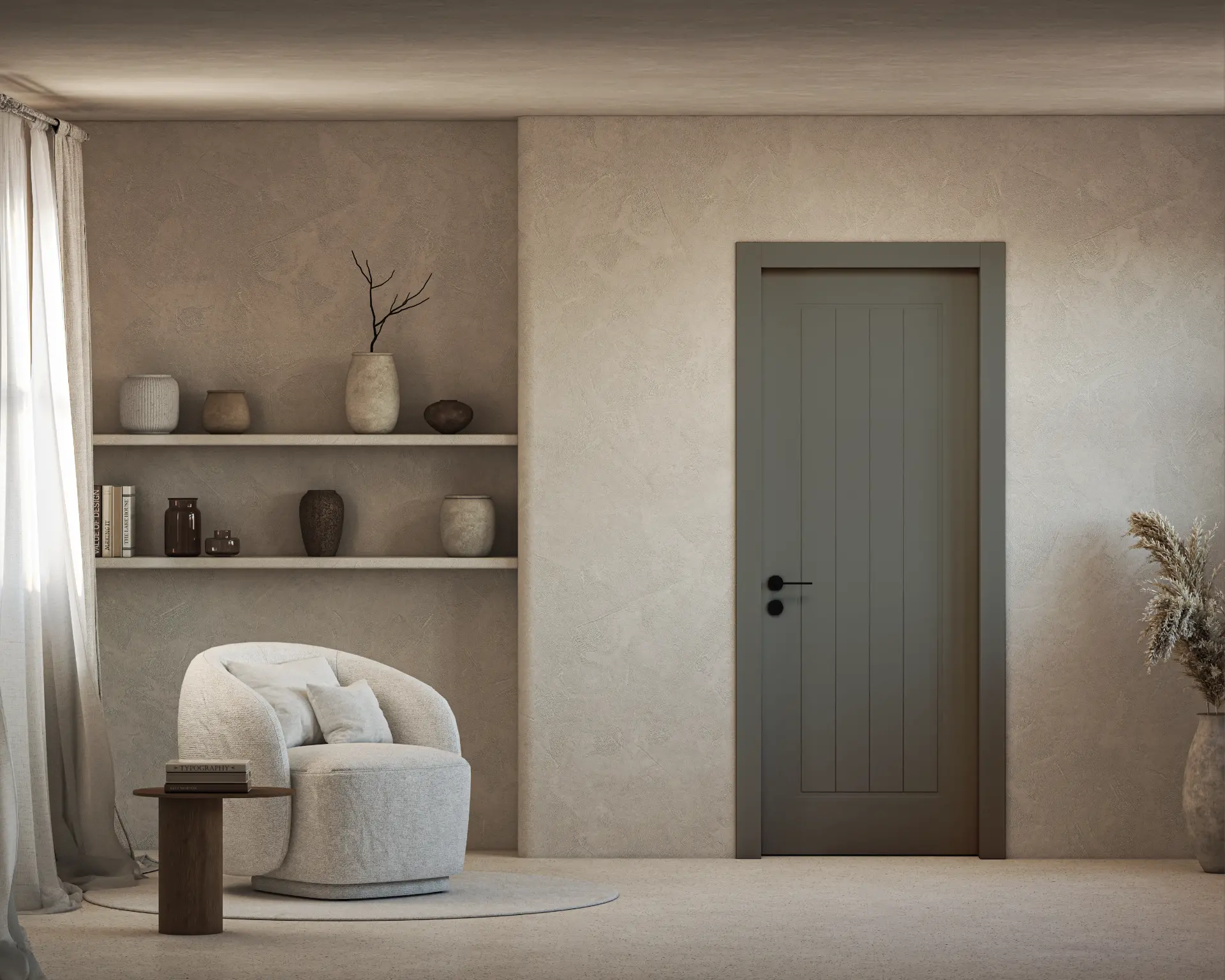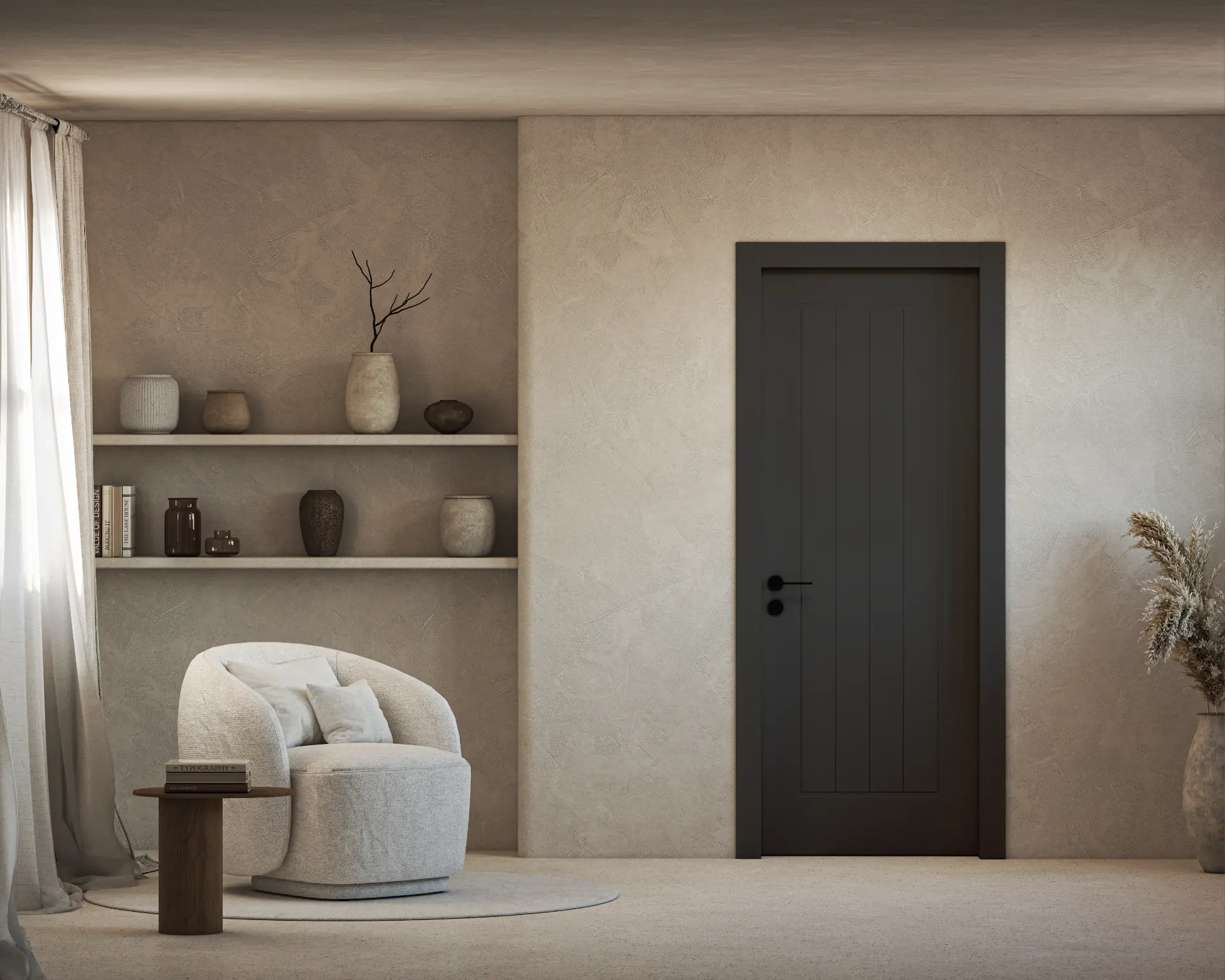 הדלת מגיעה עם משקוף והלבשות תואמים – כולם ניתנים לצביעה בהתאמה מלאה.